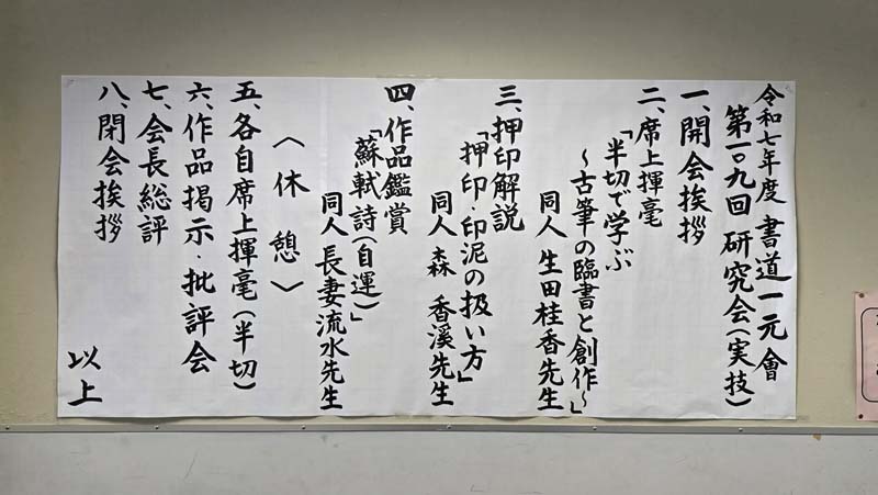 令和7年10月5日 秋晴れの中、第109回 書道一元會研究会(実技)が開催されました。